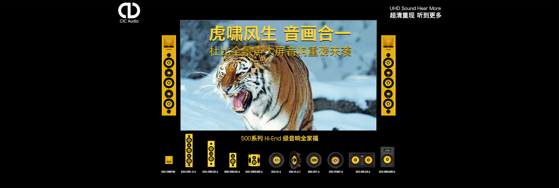 • CIC Audio? 家庭影院研發先鋒,專為4K和8K超高清大屏畫面匹配超高清晰度聲場,用流行的智能控制方式播放音樂和視頻,通過"有聲無形"理念,讓音響與智能家居和室內裝飾巧妙融合。